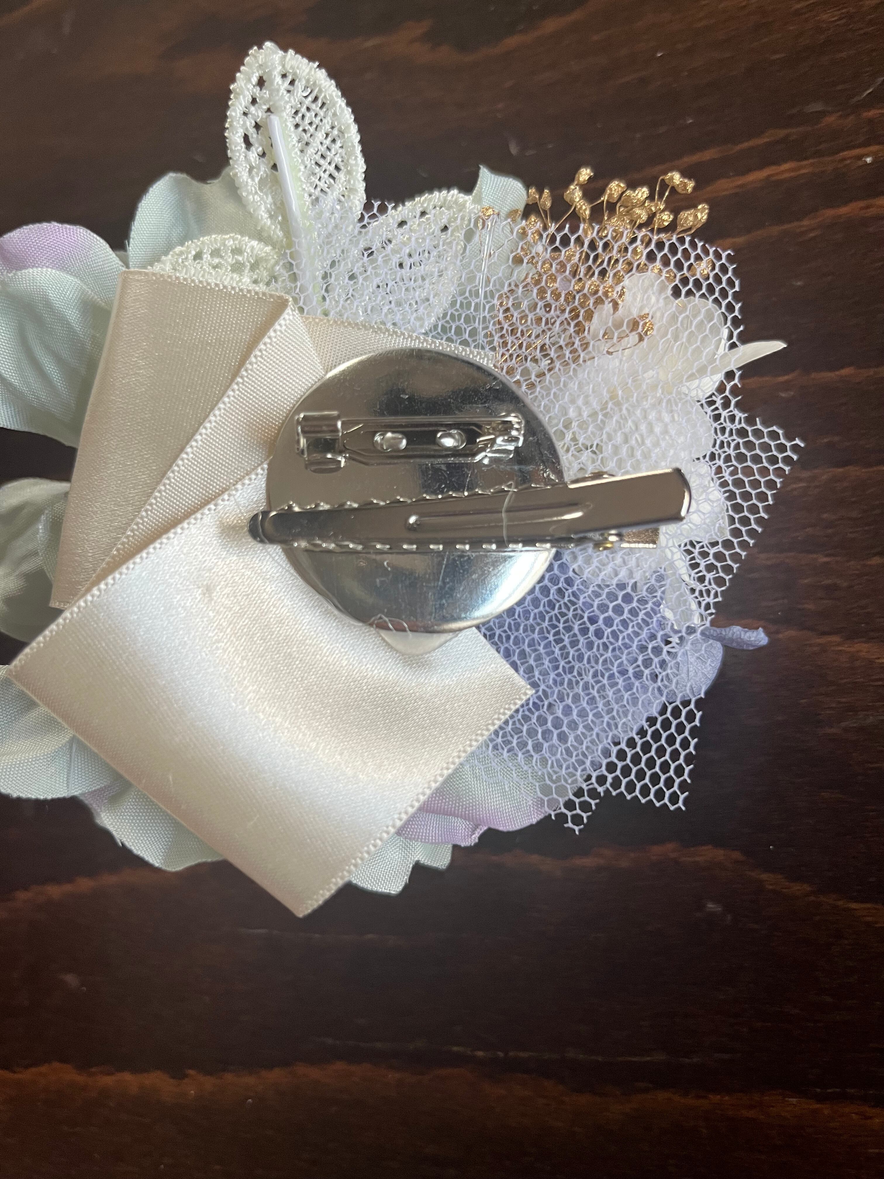 ピンとクリップの2wayタイプなので、ヘッドドレスやバッグのワンポイントなどにも使いまわせます。