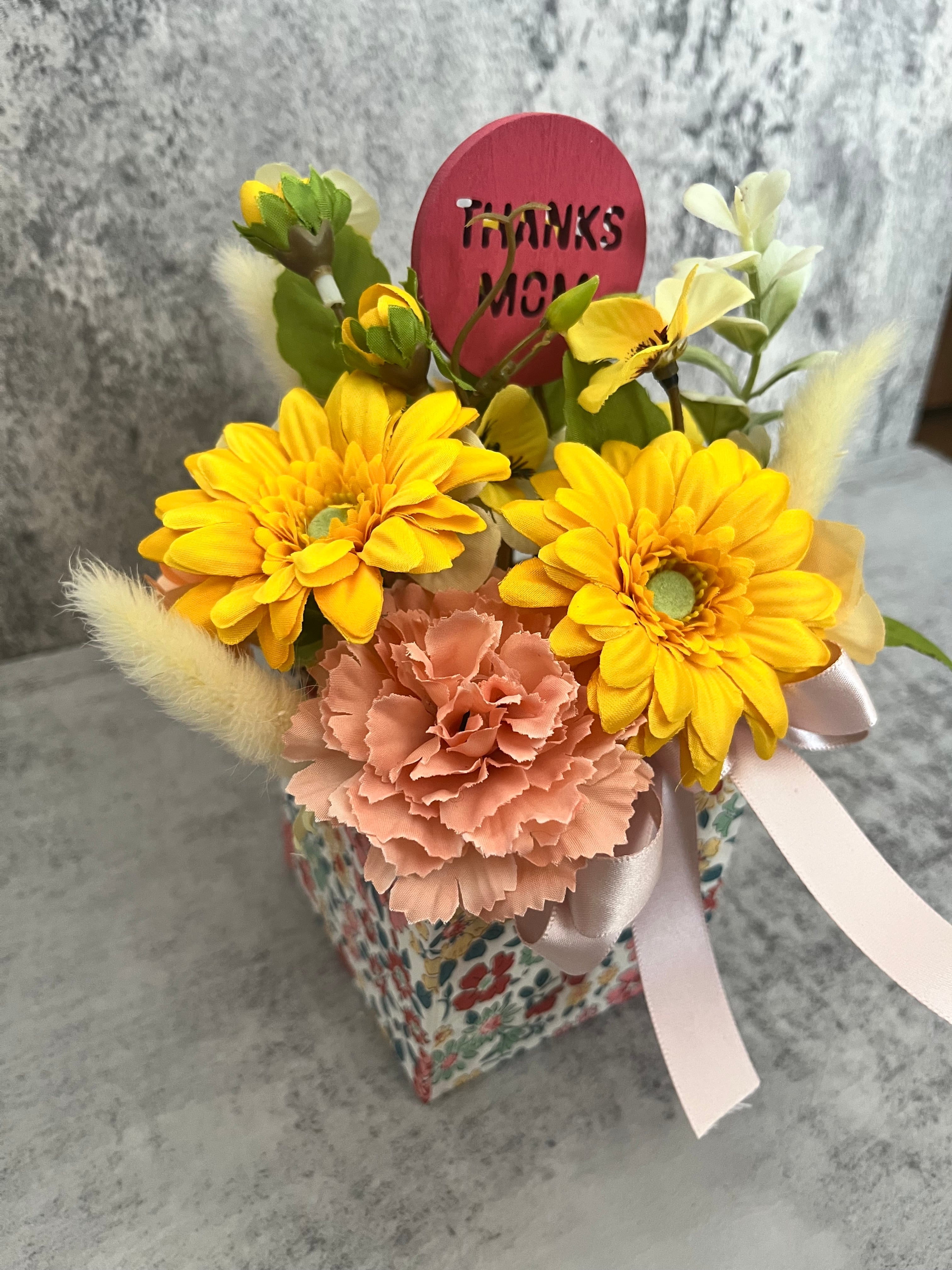 アーティフィシャル…ガーベラ、ラナンキュラス、カーネーション、ユーカリ、紫陽花