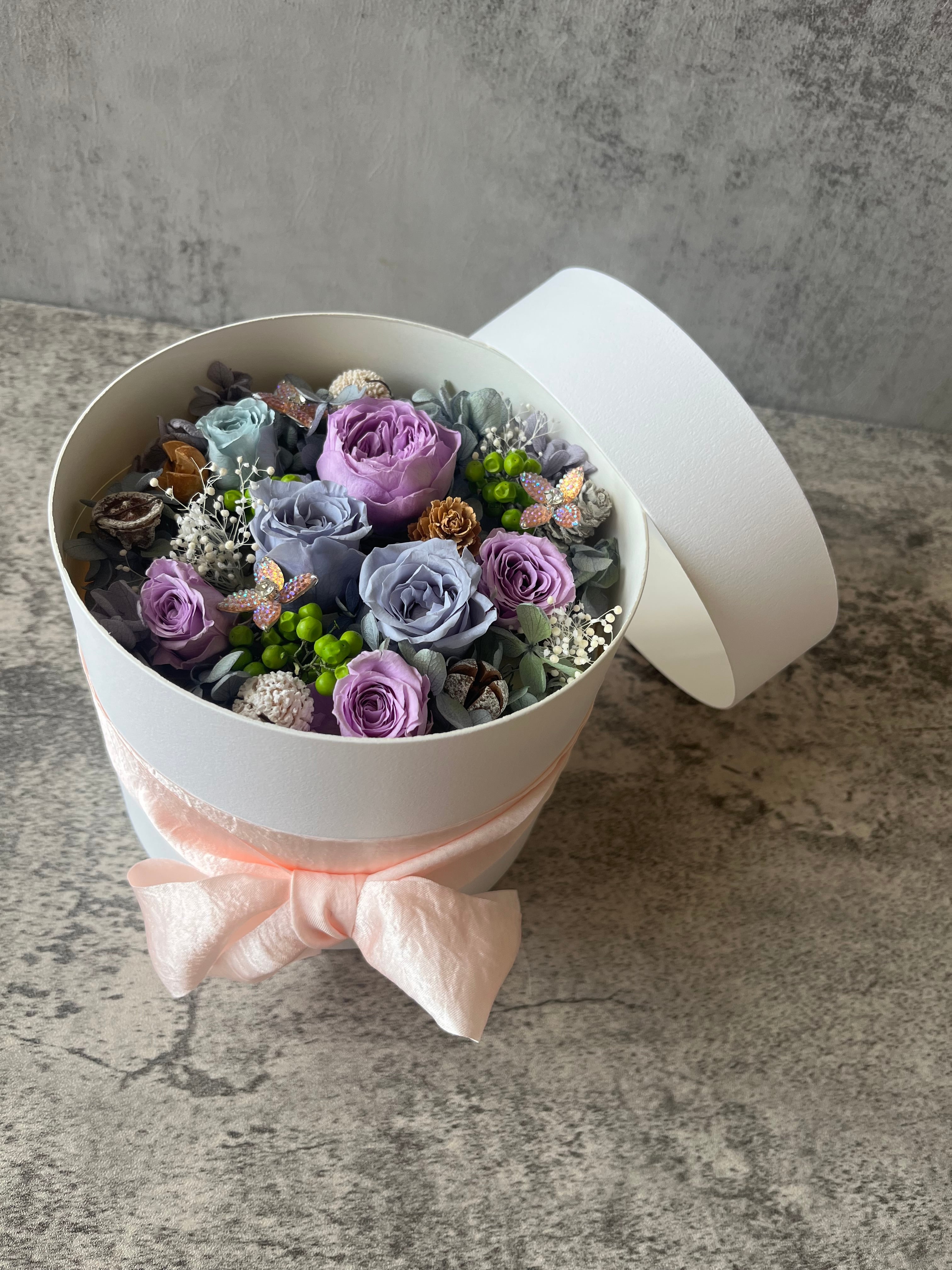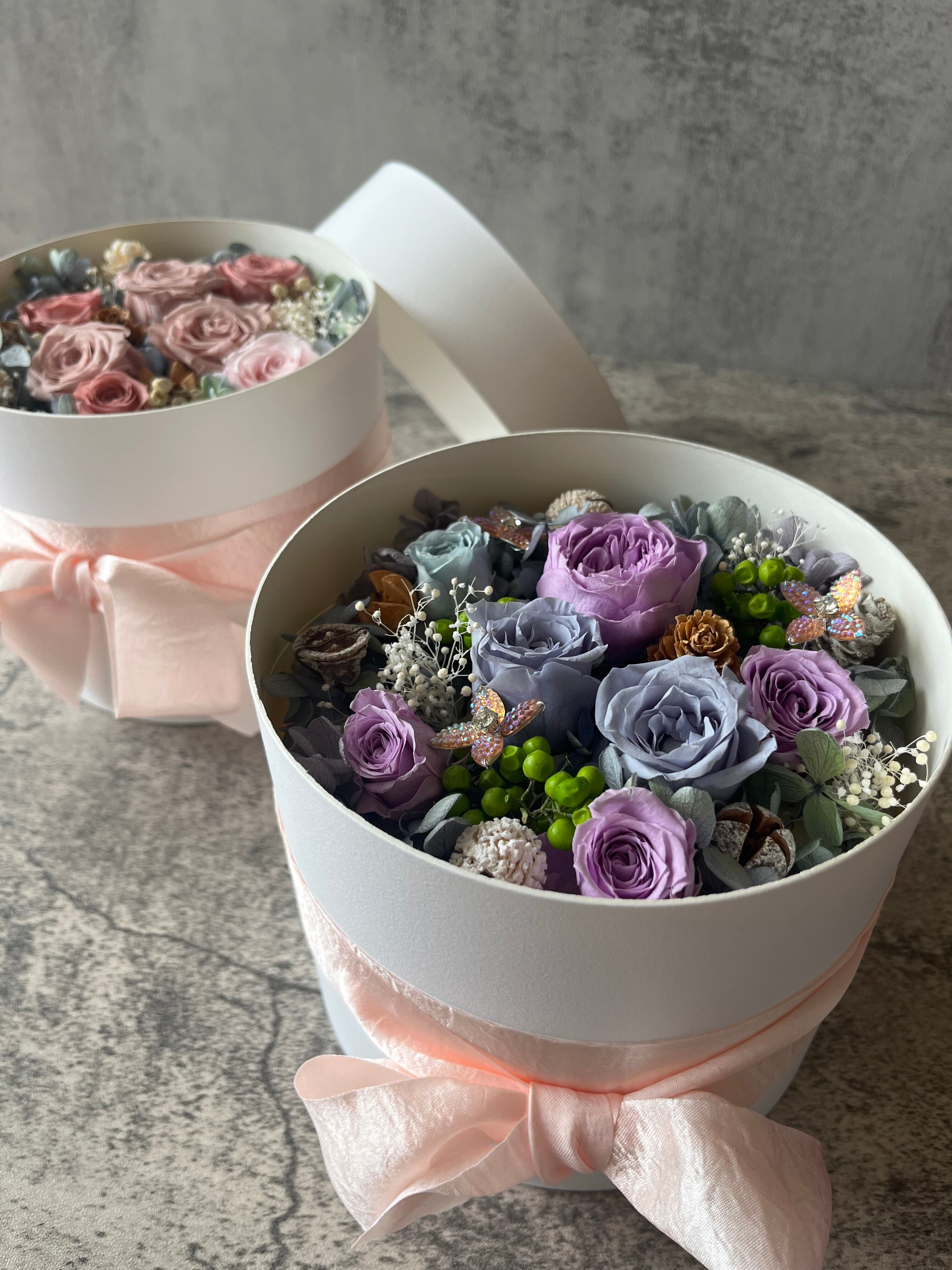 BOXの蓋を開けると、綺麗なフラワーアレンジが現れて…もらった人が笑顔になるギフト♡