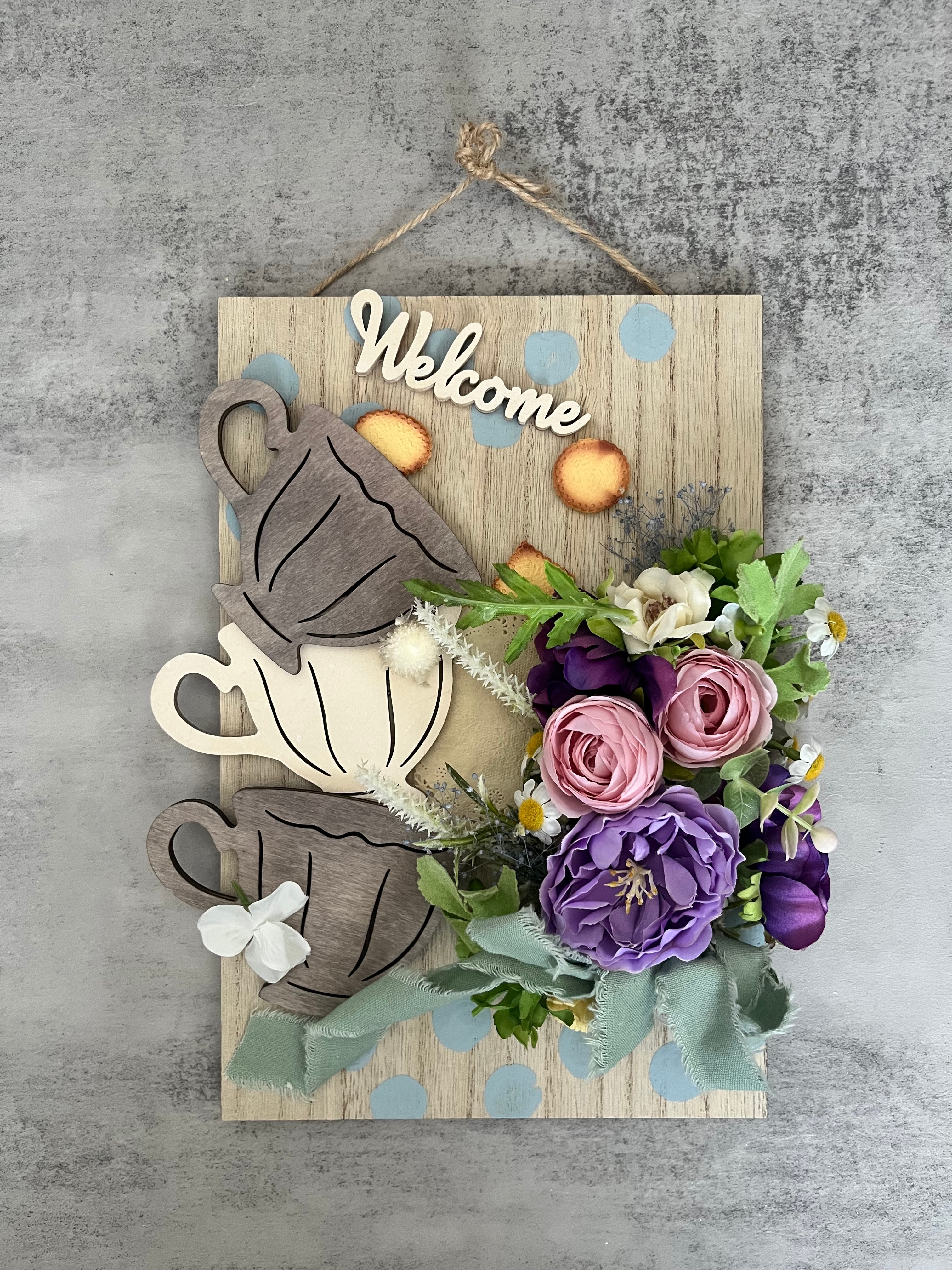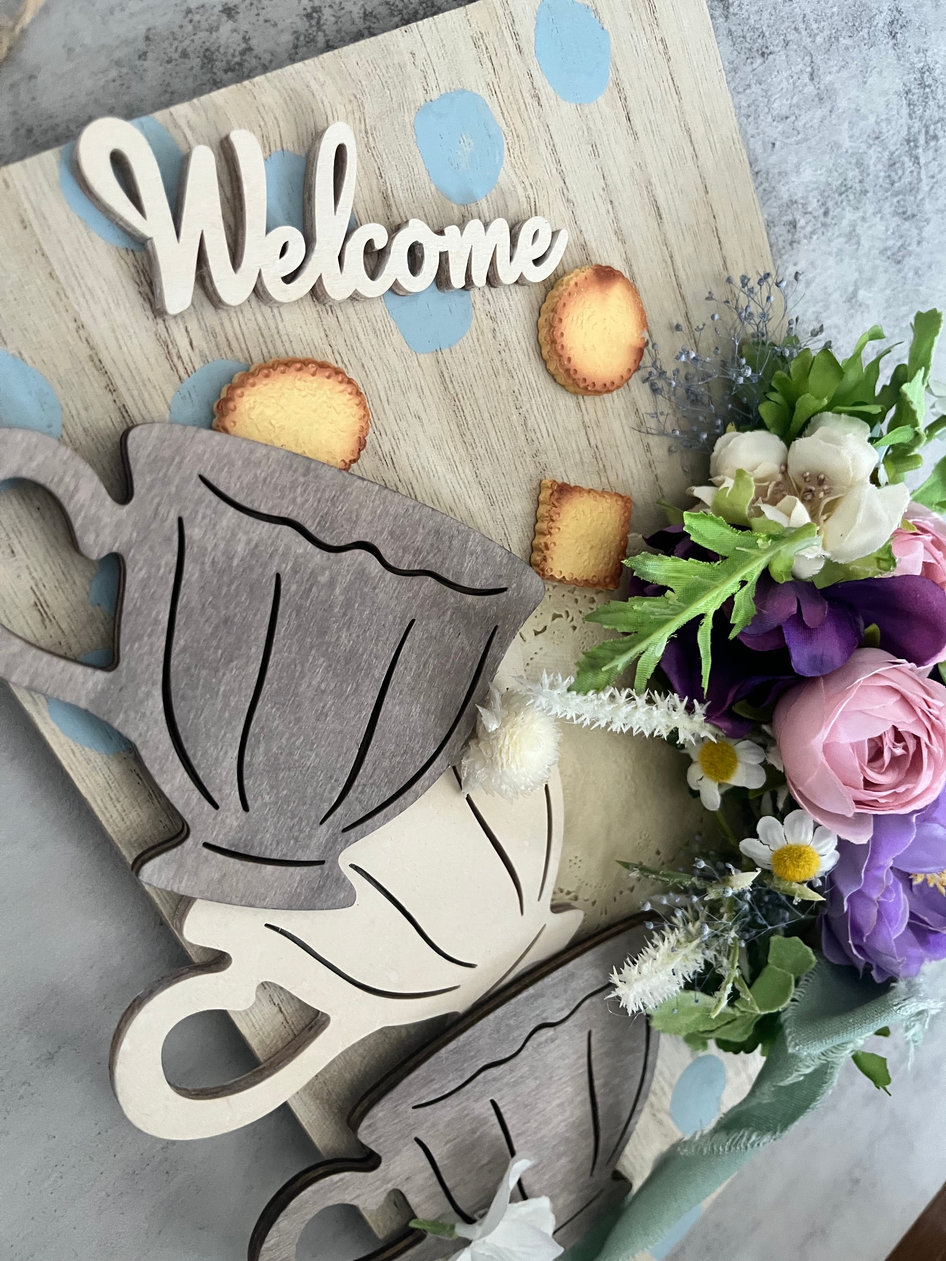 welcomeの文字やカップも木の温かみがあり、お客様を迎えたティータイムも楽しくなりそうです。