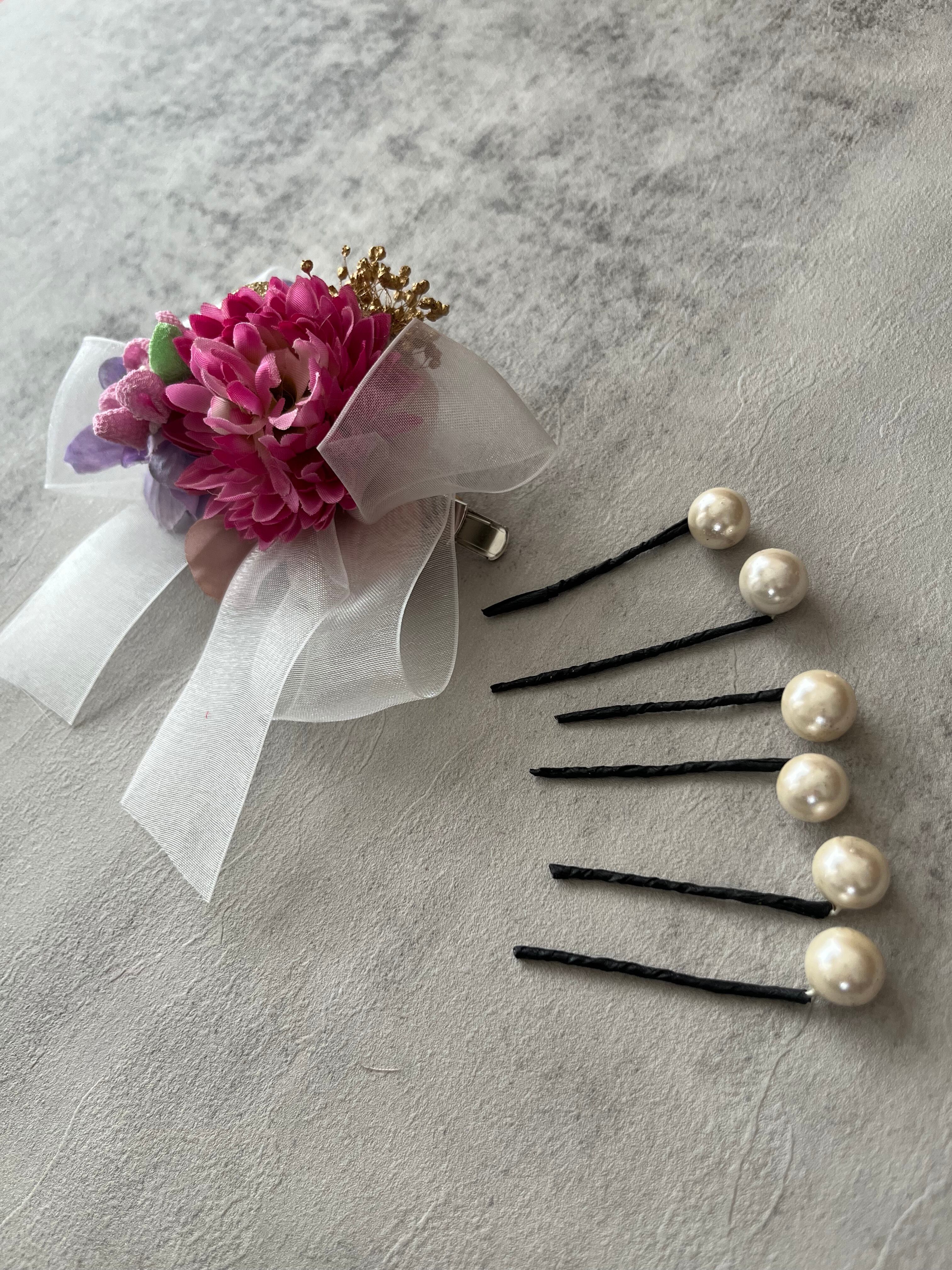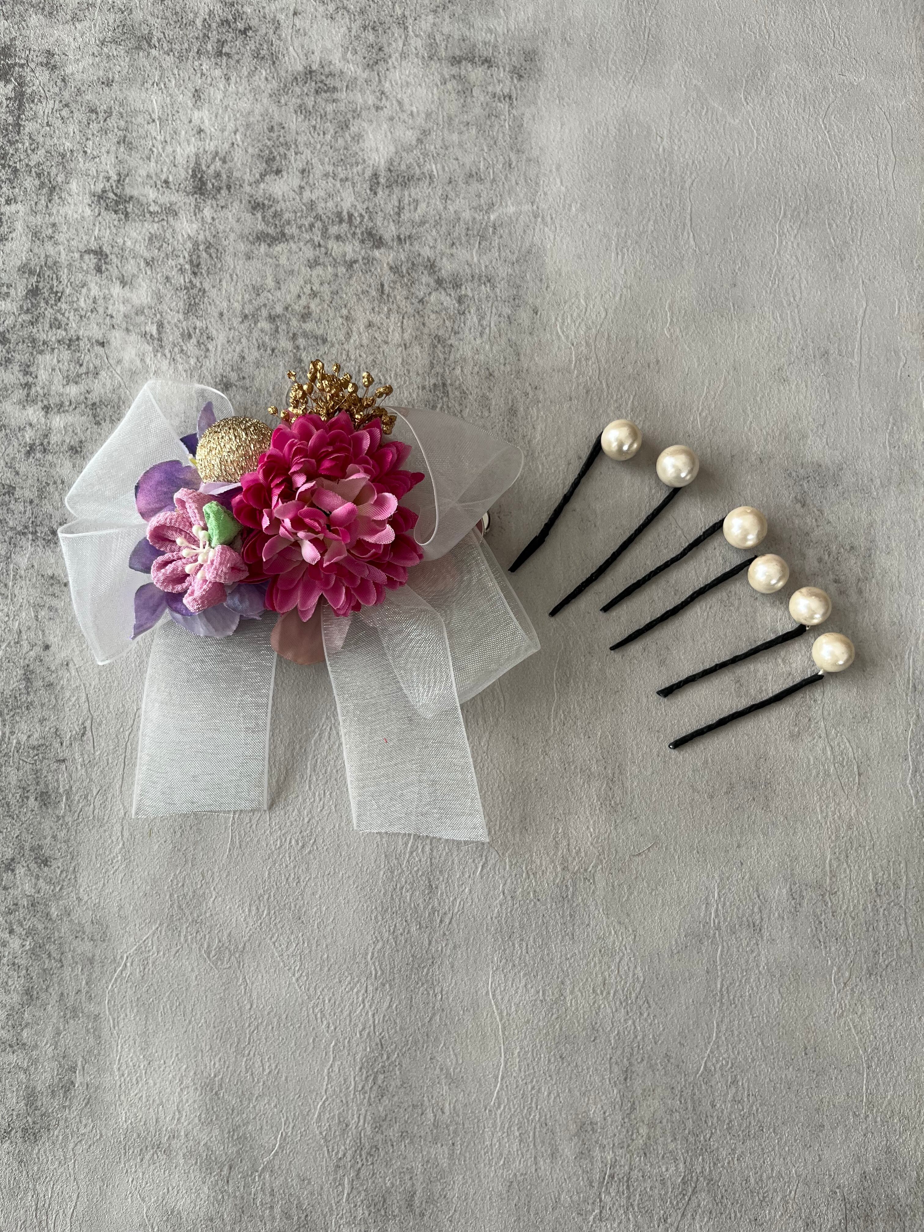 和装用髪飾りふんわりリボン(洋装兼用)♡ パールピン付き№ h002
