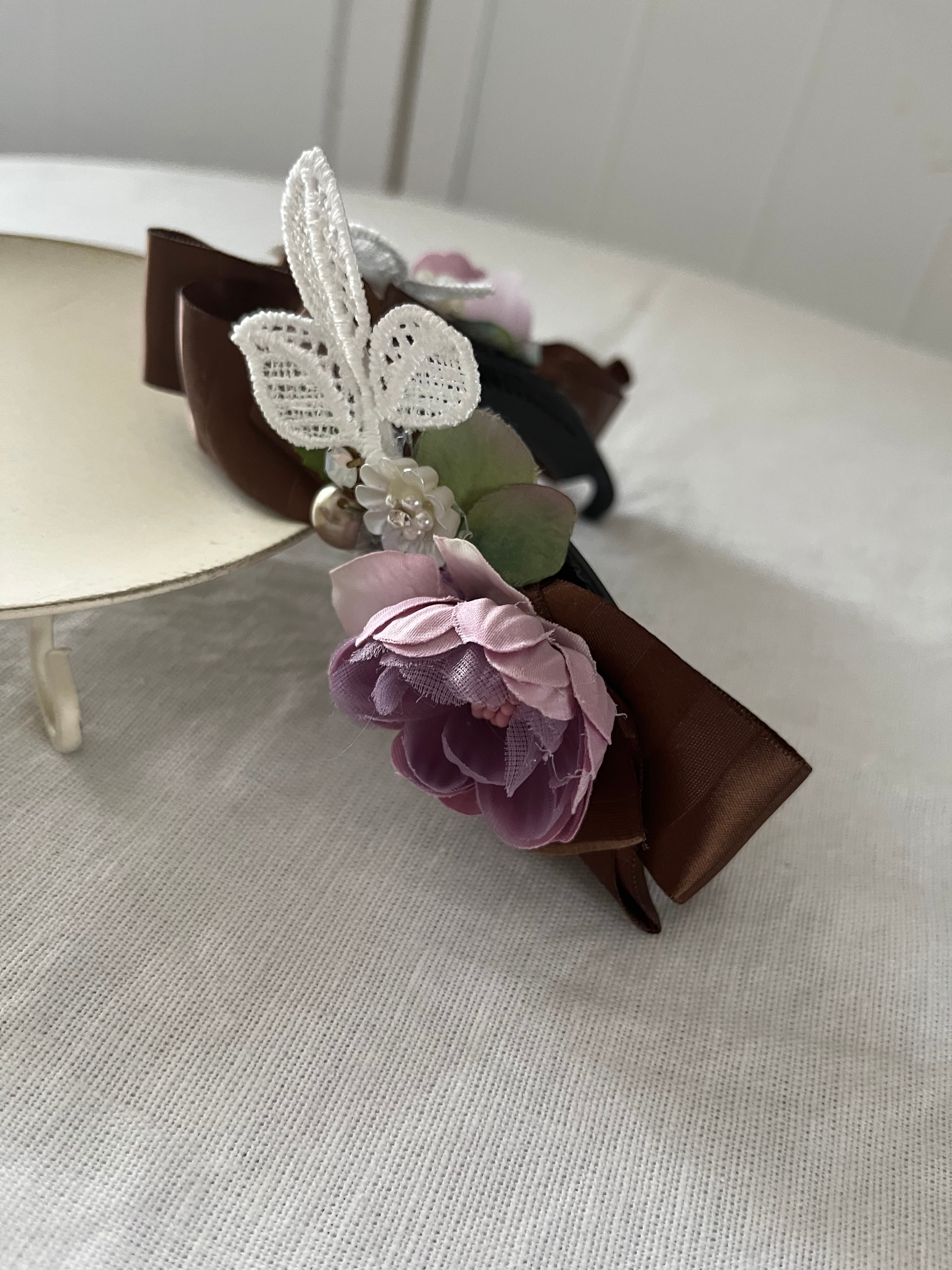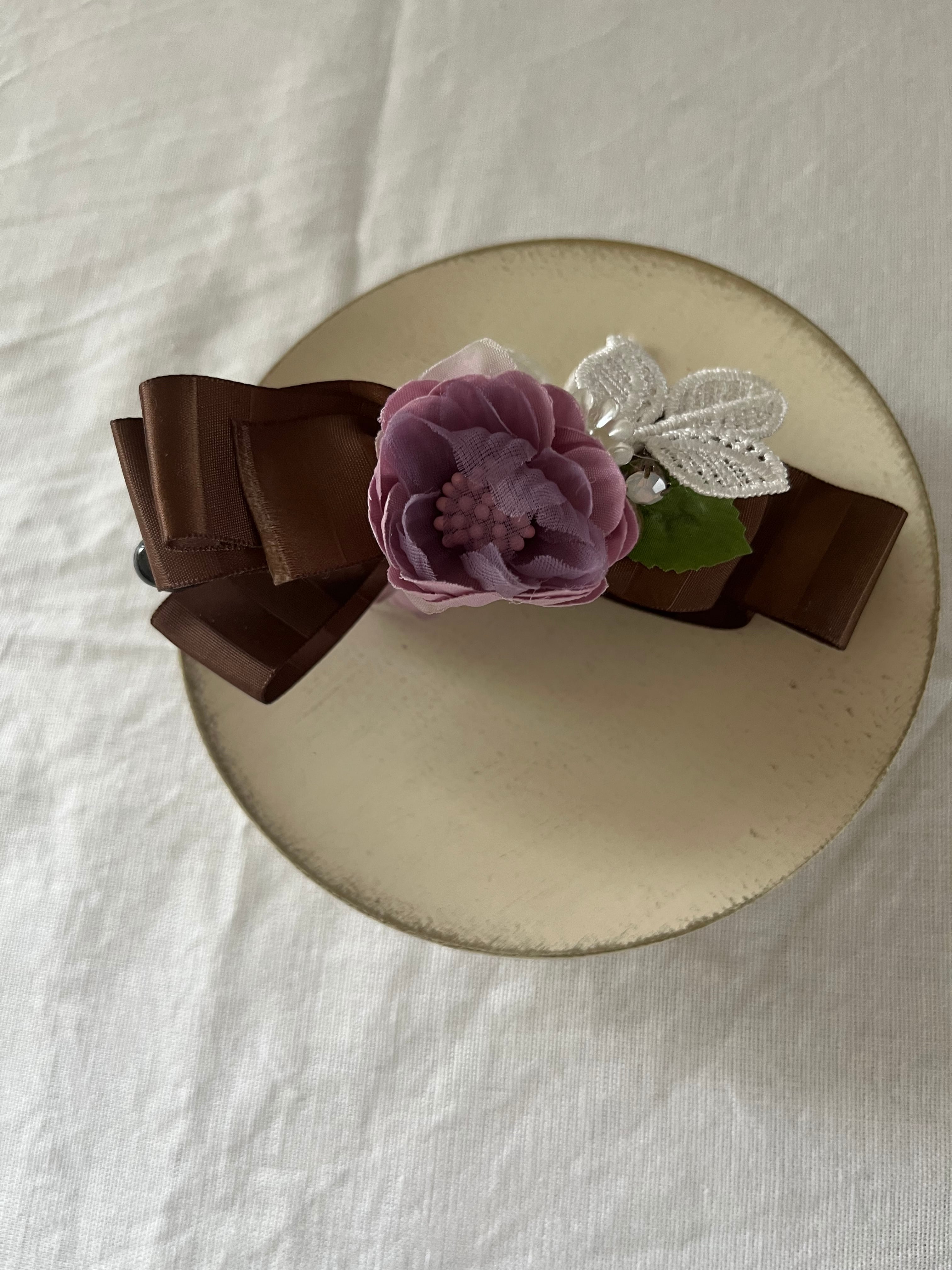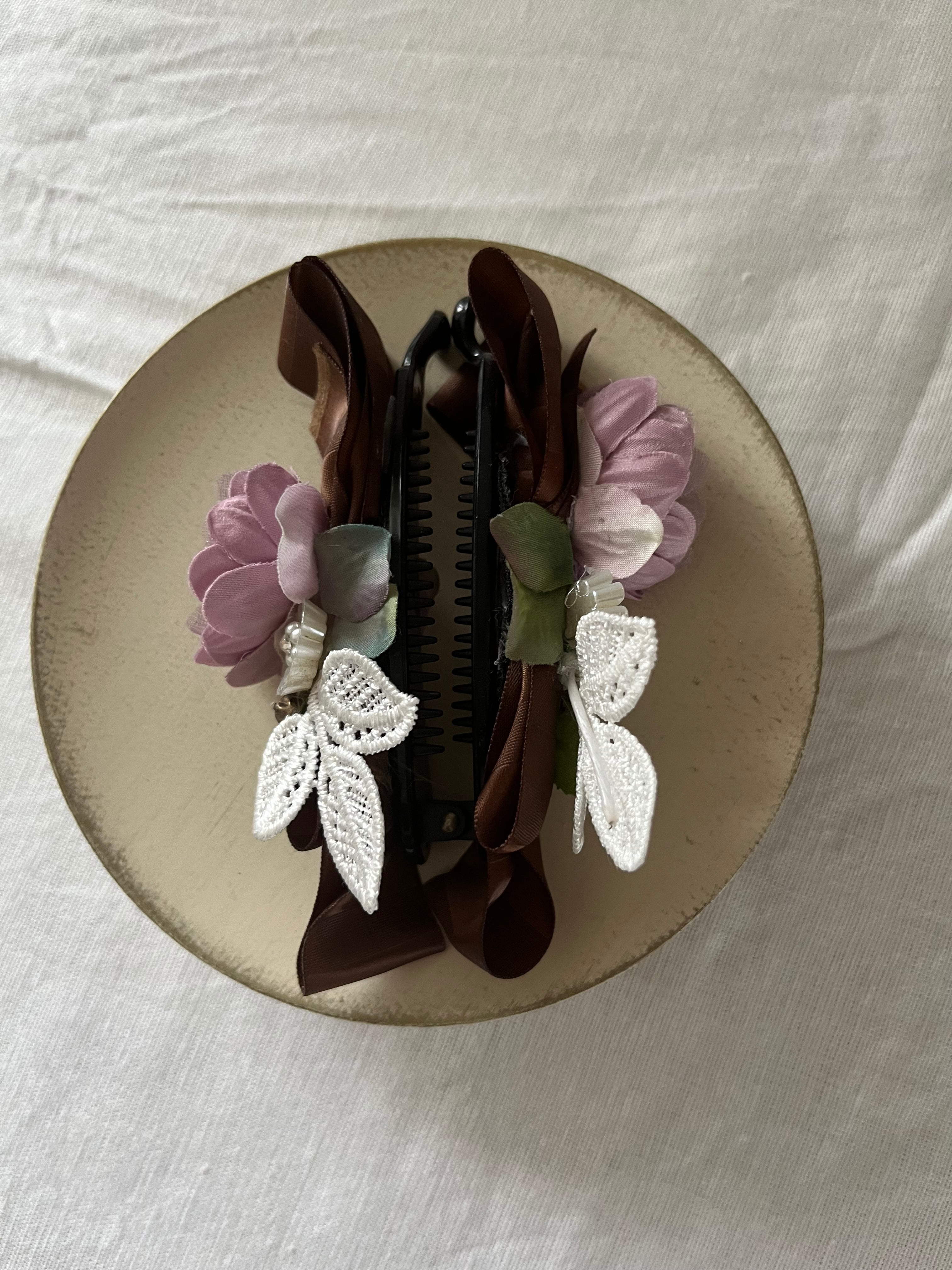 【sale】お花とリボンが可愛らしくアレンジされたバナナクリップです。