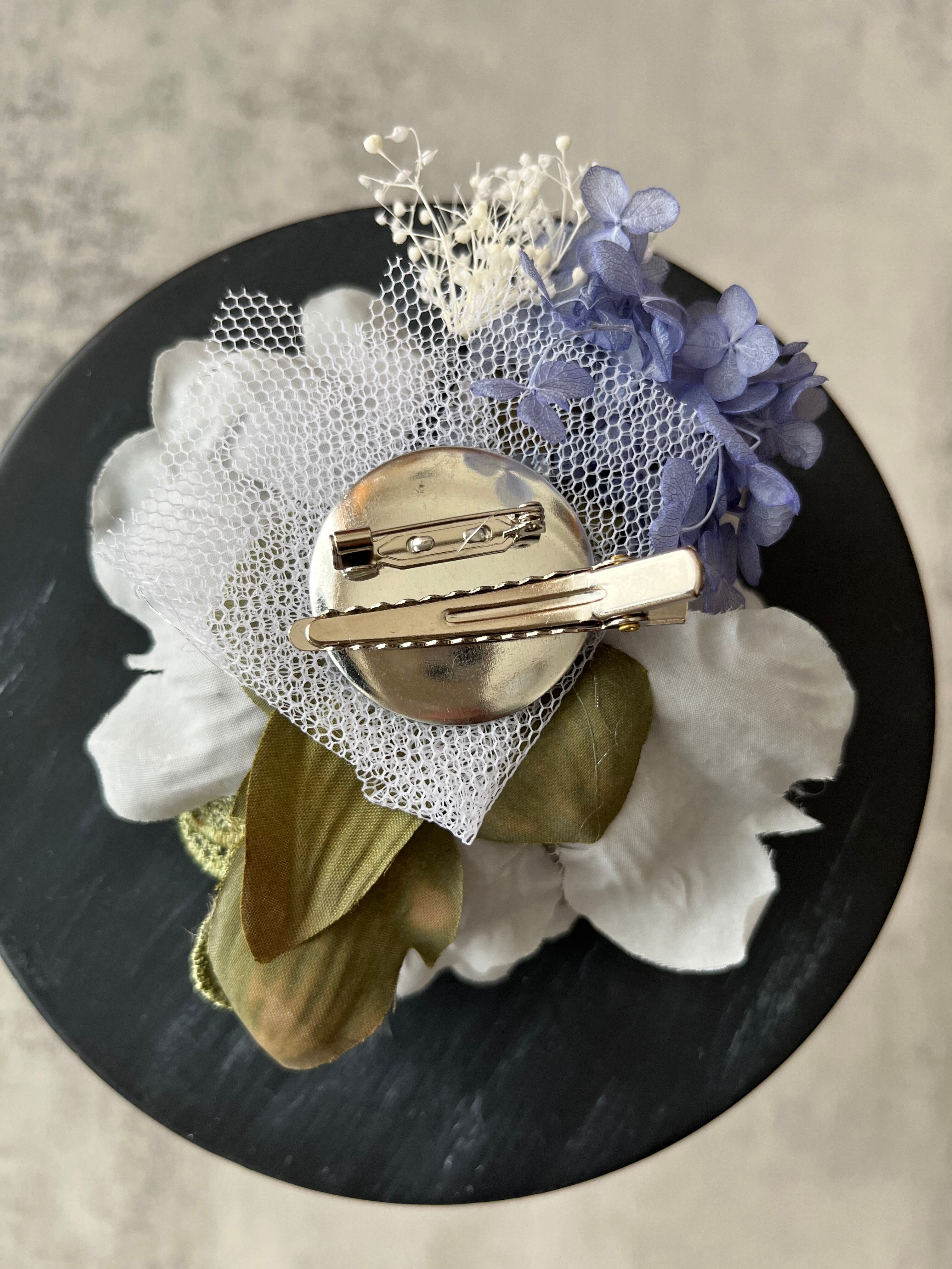 ピンとクリップの2wayタイプなので、ヘッドドレスやバッグのワンポイントなどにも使いまわせます。