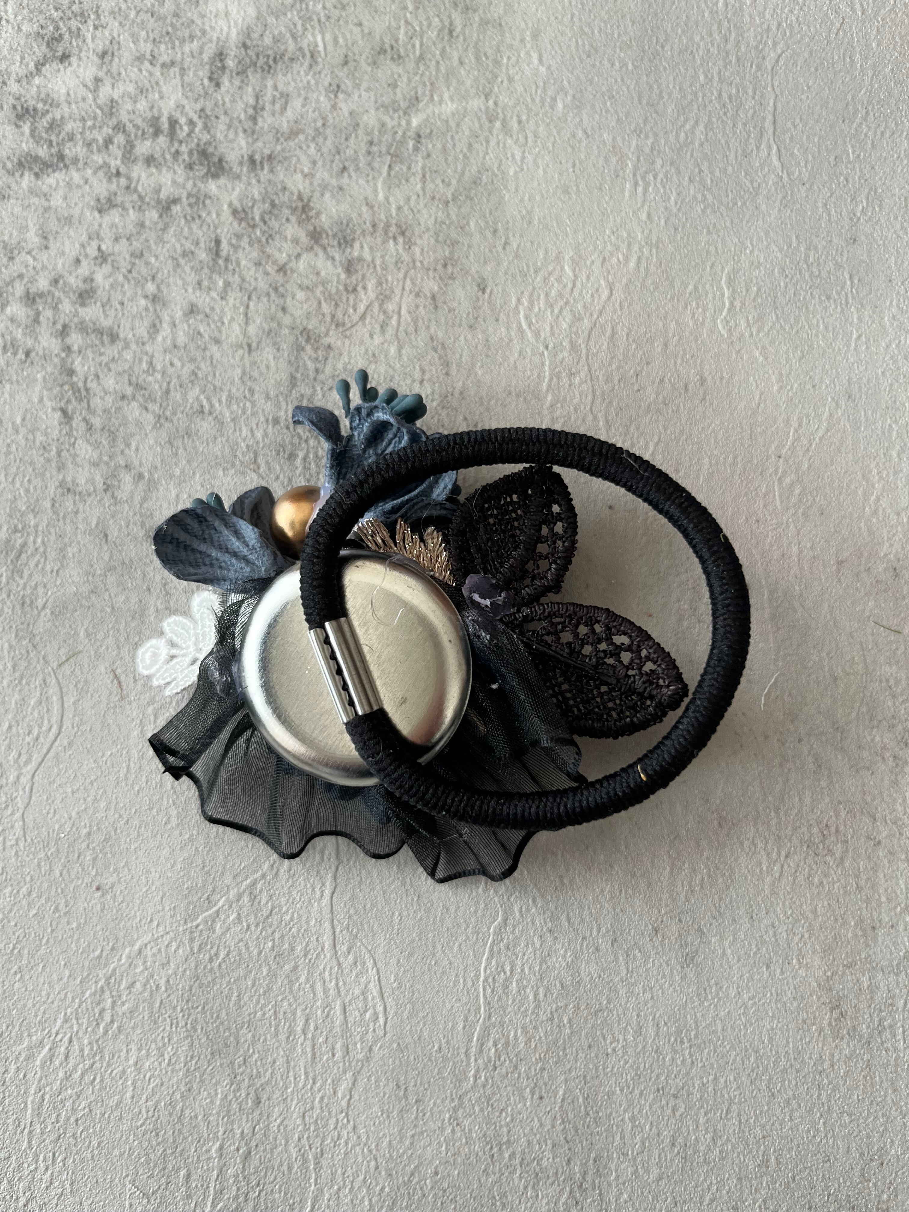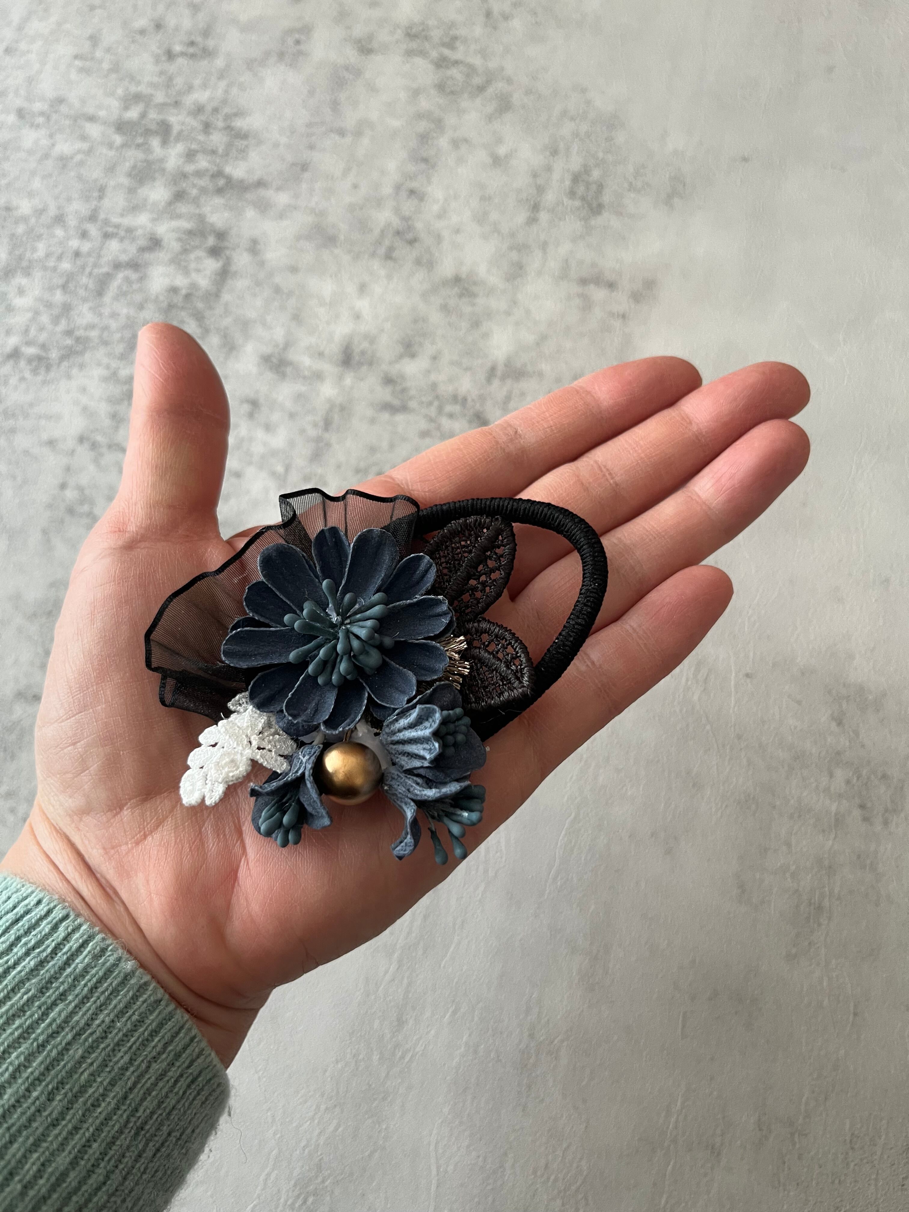 ファブリックフラワーと2種類の上質なMOKUBAリボンでアレンジしたヘアゴムです。