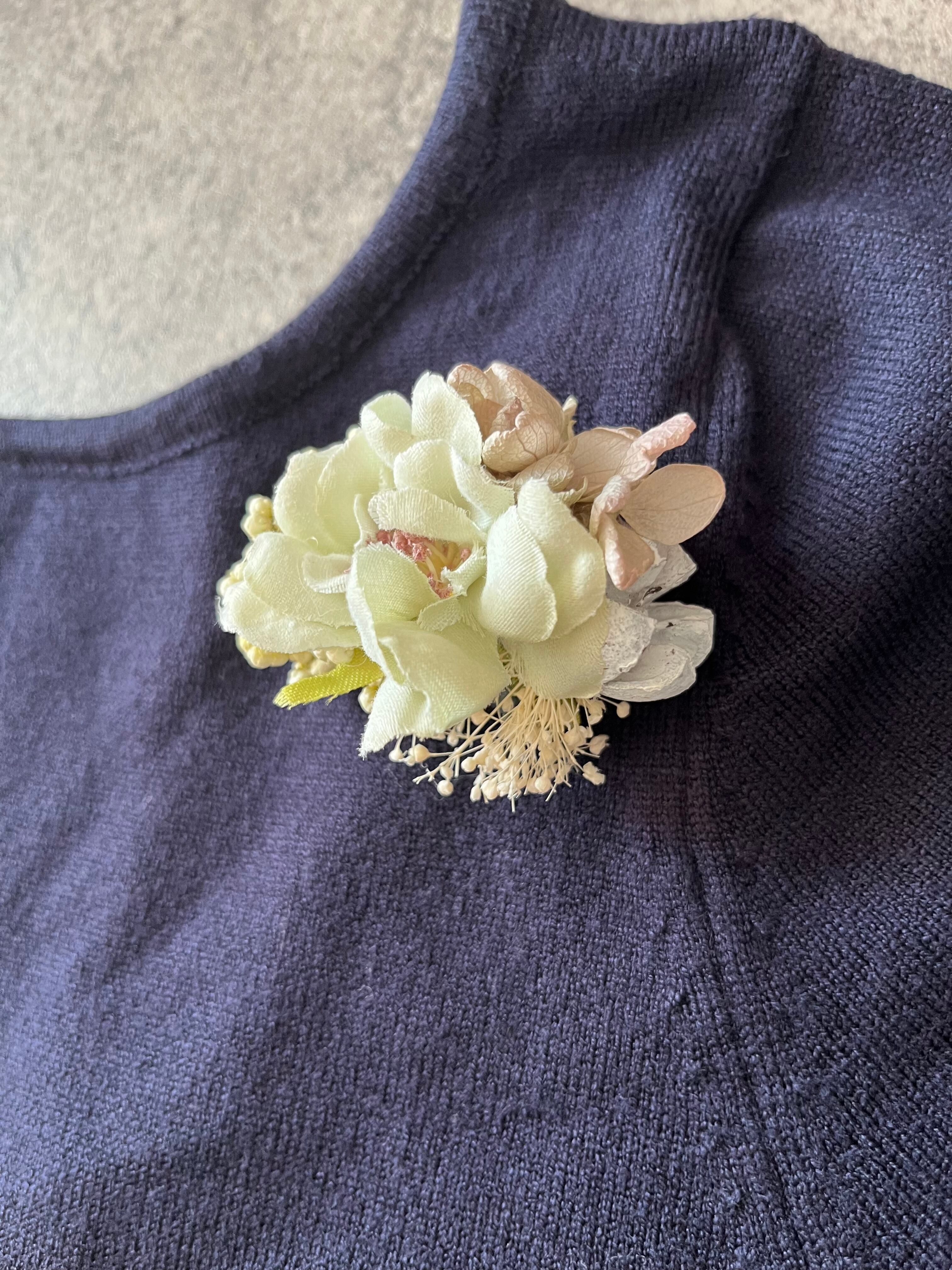 よそ行きの装いに花を添えて、お出かけがちょっとうきうきな気分になってくれたら嬉しいです。